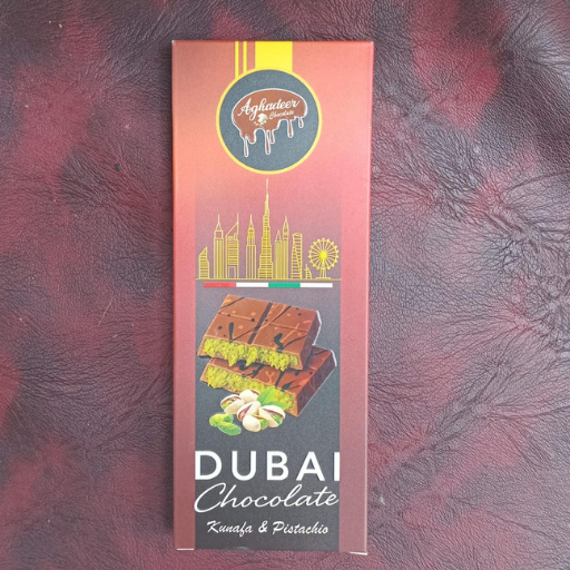 Aghadeer is one of the leading UAE brands that brought the “Viral Dubai Chocolate” experience into a retail format. It is known for its high filling-to-chocolate ratio and authentic Arabic ingredients.