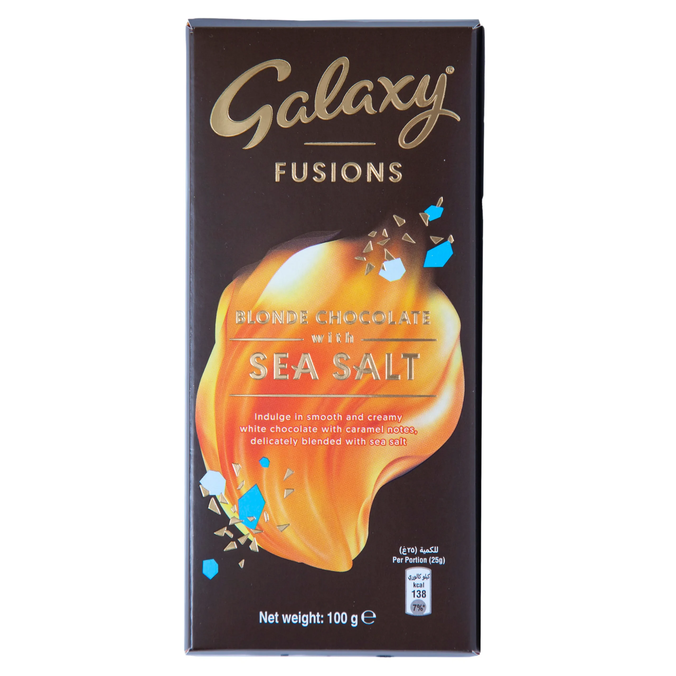 The Galaxy Fusions Blonde Chocolate with Sea Salt bar is a sophisticated and innovative creation that forms part of the premium Galaxy Fusions line.1 This bar combines the buttery, caramelized sweetness of Blonde Chocolate with the delicate, contrasting sharpness of sea salt crystals, offering a uniquely balanced and indulgent taste experience.